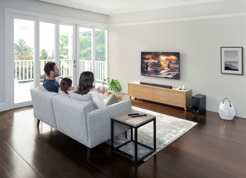 HT-G700 dolazi sa snažnim bežičnim subwooferom i većim unutarnjim prostorom koji pružaju dublji, bogatiji bas zvuk. I na kraju, postavljanje s TV-om je brzo i jednostavno putem Bluetooth® ili HDMI eARC/ARC.