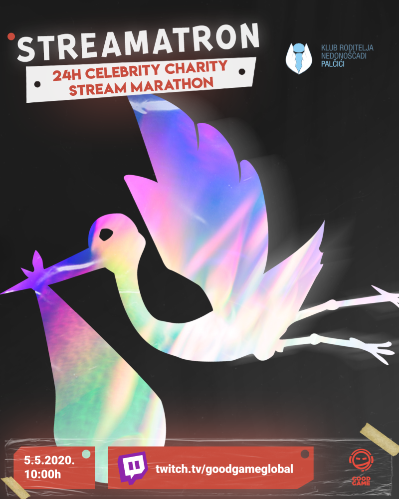 Gaming zajednica udružit će se u prvom 24-satnom dobrotvornom gaming streamu kako bi sve svoje članove, gejmere i pratitelje pozvali da se donacijama uključe u akciju „Vratimo Palčiće u Petrovu“. Humanitarni Streamatron u organizaciji startupa Good Game Global počinje u utorak 5. svibnja u 10:00 sati, a može se pratiti u sljedećih 24 sata putem njihovog Twitch kanala. Svakih sat vremena izmjenjivat će se igrači, a tijekom 24 sata dobrotvornog streama, poznati će influenceri, youtuberi i mnogi drugi igrati različite igre i pozivati ljude da doniraju sredstva za akciju „Vratimo Palčiće u Petrovu“, koju je pokrenula udruga Klub roditelja nedonoščadi Palčići.