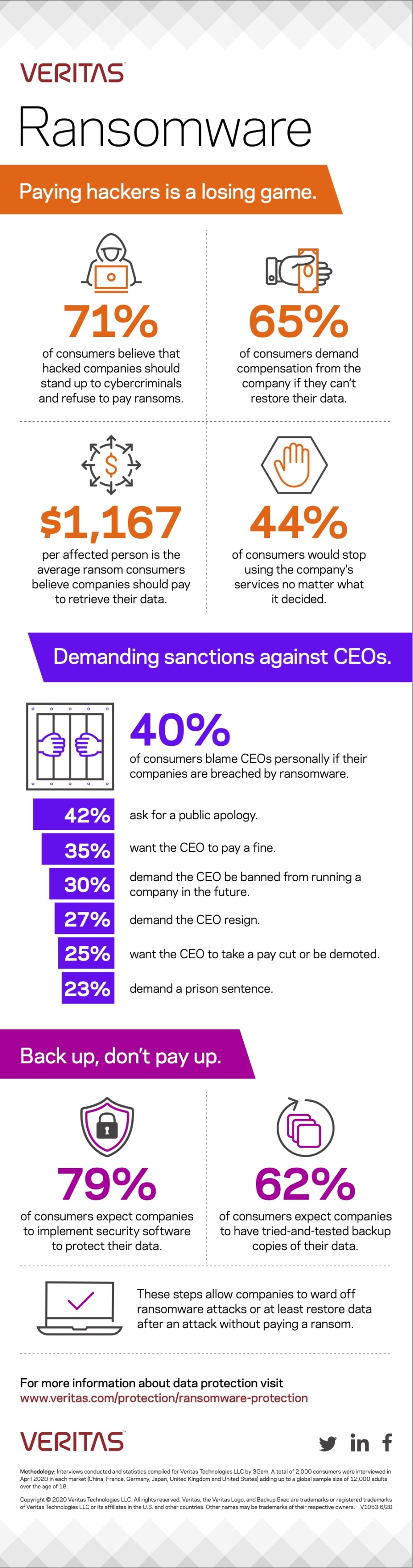 Istraživanje je za Veritas Technologies LLC provela tvrtka 3Gem. Tijekom travnja 2020. ispitano je po 2000 korisnika u svakoj od šest zemalja (Kina, Francuska, Njemačka, Japan, Sjedinjene Američke Države i Ujedinjeno Kraljevstvo) pa ukupni uzorak iznosi 12.000 odraslih osoba starijih od 18 godina.