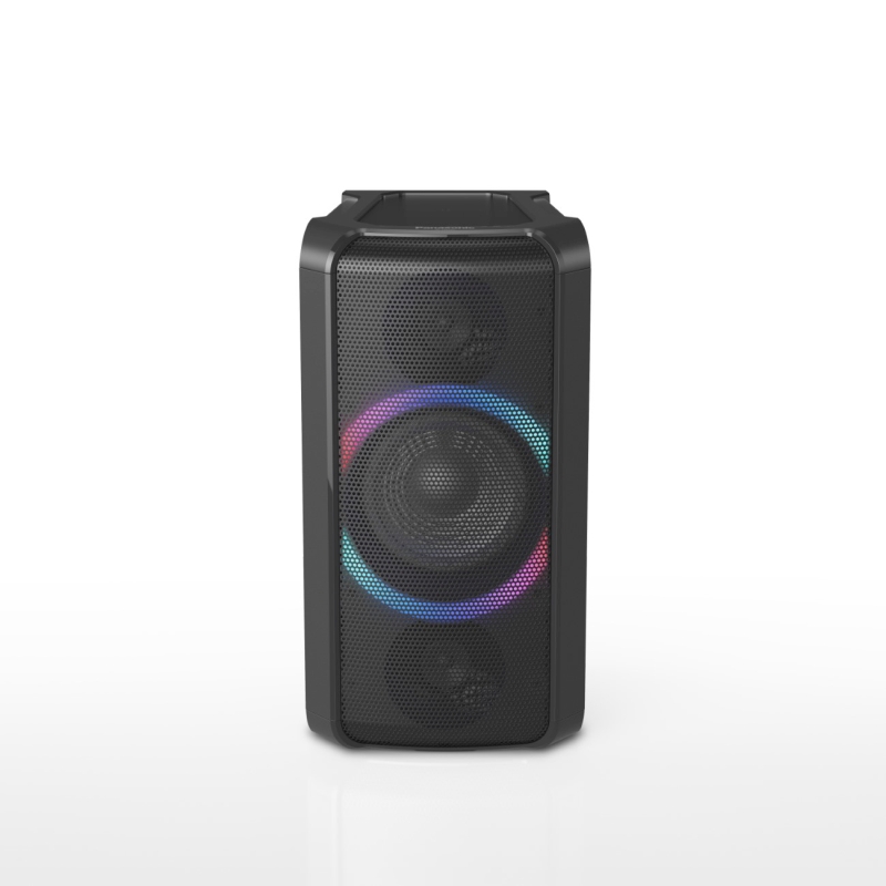 Kompaktan zvučnik za partyje, izvanredan zvuk. Bez obzira na veličinu, zvučnik neće biti dobar za partyje ako ne daje snažan zvuk: “Kad se u Panasonicu dizajniraju audioproizvodi, uvijek počinjemo od zvuka. Kod zvučnika za partyje najvažniji je moćan bas, pa smo se pobrinuli da TMAX5 tu ne zaostaje. Mathias Noetzold, voditelj audio/videoproizvoda, Panasonic Marketing Europe. Sa zadivljujućom izlaznom snagom od 150 W RMS (THD 30 %) / 1650 W (PMPO) iz njegova dva ugrađena digitalna pojačala, TMAX5 lupa puno jače nego bi to dale naslutiti njegove dimenzije. Zašto bi zbog manjka prostora patila kvaliteta zvuka?