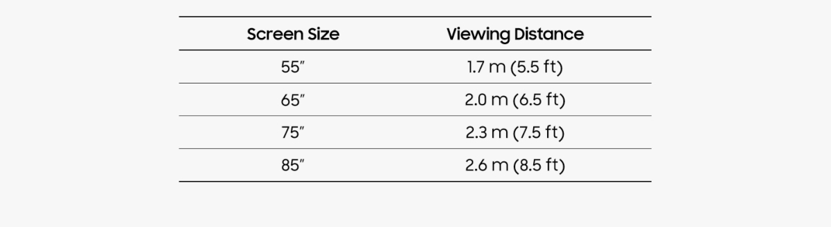 Kada se bira novi digitalni kućni ljubimac (čitaj: televizor), uvijek treba slijediti jasno pravilo: „veće je bolje“. Zato je potrebno pravilno odabrati konkretnu veličinu naspram udaljenosti točke gledanja. Najbitnija stvar je odabrati zaslon koji će zauzeti 40 posto vašeg vidnog polja. Kako biste dobili čarobno rješenje jednostavno pomnožite veličinu zaslona s 1.2 i dobit će udaljenost na koju ćete postaviti vaš TV u dnevnom boravku. Kada vam televizor zauzima većinu vidnog polja, možete gledati nogometne utakmice kao da ste na tribinama. Dapače, možda ćete čak imati bolji pogled na svojem televizoru nego da ste na samom stadionu!