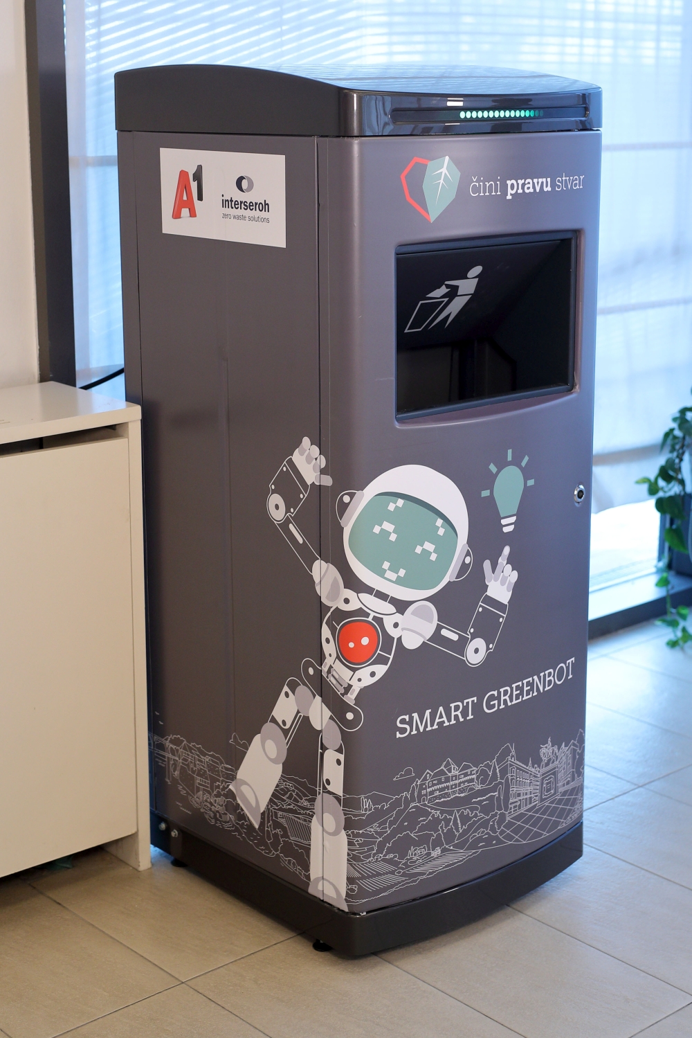 Kao društveno odgovorna kompanija kojoj je održivo poslovanje jedna od glavnih strateških odrednica, A1 Hrvatska u suradnji s parterom, kompanijom Interseroh na domaće tržište donosi tri modela spremnika za pametno gospodarenje otpadom na IoT tehnologiji. Prvi model namijenjen je vanjskim prostorima i omogućuje prešanje otpada povećavajući kapacitet spremnika do 10 puta. Uz napajanje solarnom energijom, energetski je samoodrživ. Opremljen je senzorom napunjenosti i opremom za komuniciranje s cloud platformom u realnom vremenu. Ekvivalent mu je drugi model namijenjen unutarnjim prostorima. Također, opremljen je prešom, senzorima statusa i sustavom za povezivanje i slanje informacija. Odlaganje otpada u spremnik je beskontaktno, odnosno otvara se na senzor pokreta.