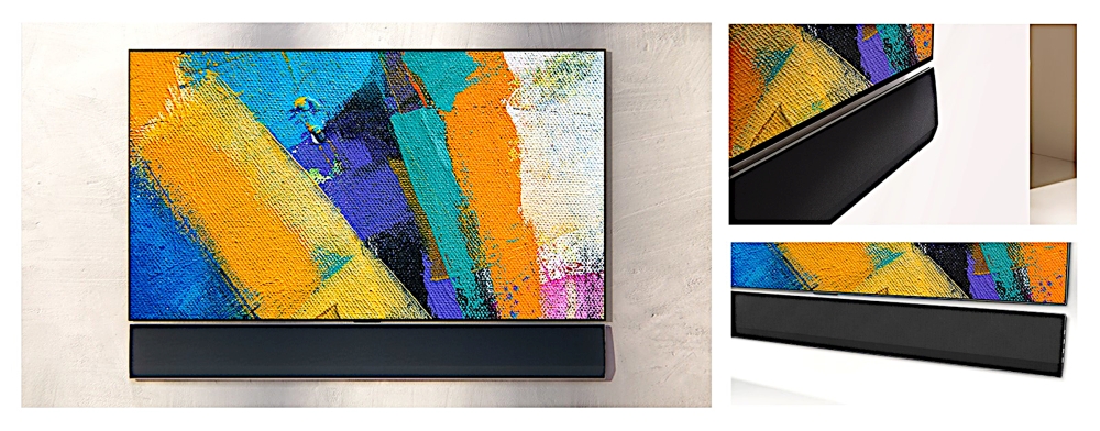 GX soundbar se savršeno vizualno uklapa s LG-evom Gallery serijom OLED televizora nadahnutom umjetnošću. Kako bi se pružila maksimalna fleksibilnost, soundbar se može postaviti na zid direktno ispod televizora ili može stajati na čvrstom čeličnom stalku koji dolazi s njim. S obzirom da ima dimenzije 15V x 144.6Š x 3.25D cm, GX soundbar je jednake širine i završne obrade kao i 65-inčni televizor LG GX Gallery. U srži LG-evog gallery dizajna je filozofija cjelovitog TV sustava koji se može skladno uklopiti u određeni prostor - koncept kojeg LG-evi dizajneri nazivaju „dodatna prostorna vrijednost“.