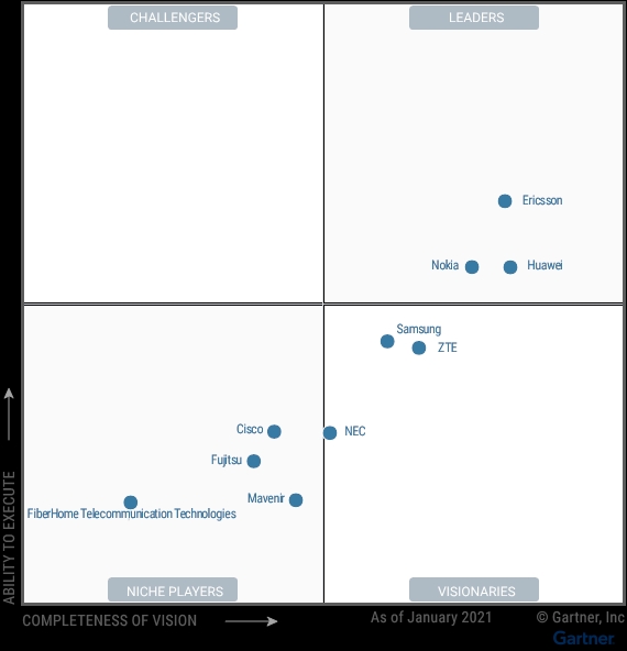 Ericsson (NASDAQ: ERIC) je proglašen vodećim u magičnom kvadrantu za 2021. godinu za 5G mrežnu infrastrukturu za pružatelje komunikacijskih usluga od strane neovisne tvrtke za istraživanje i savjetovanje, Gartner. Priznanje Ericssonovog liderstva u kvadrantu u izvješću Gartner Magic Quadrant, iz veljače 2021. godine za 5G mrežnu infrastrukturu za davatelje komunikacijskih usluga prepoznaje vodeći položaj kompanije i u cjelini vizije i u mogućnosti izvršenja.